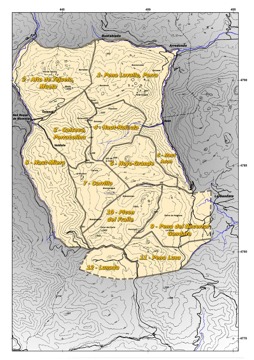 Afin de faciliter la recherche d'informations, nous avons divisé le massif en 12 secteurs ayant dans la mesure du possible une unité cohérente par rapport aux réseaux souterrains qu'ils couvrent. L'empilement de niveaux calcaires bien différenciés, au sud du massif notamment, complique bien sûr ce découpage. De même, certains mégas réseaux se trouvent impliqués dans plusieurs secteurs. Dans ce cas, ils sont mentionnés dans chacun d'eux.