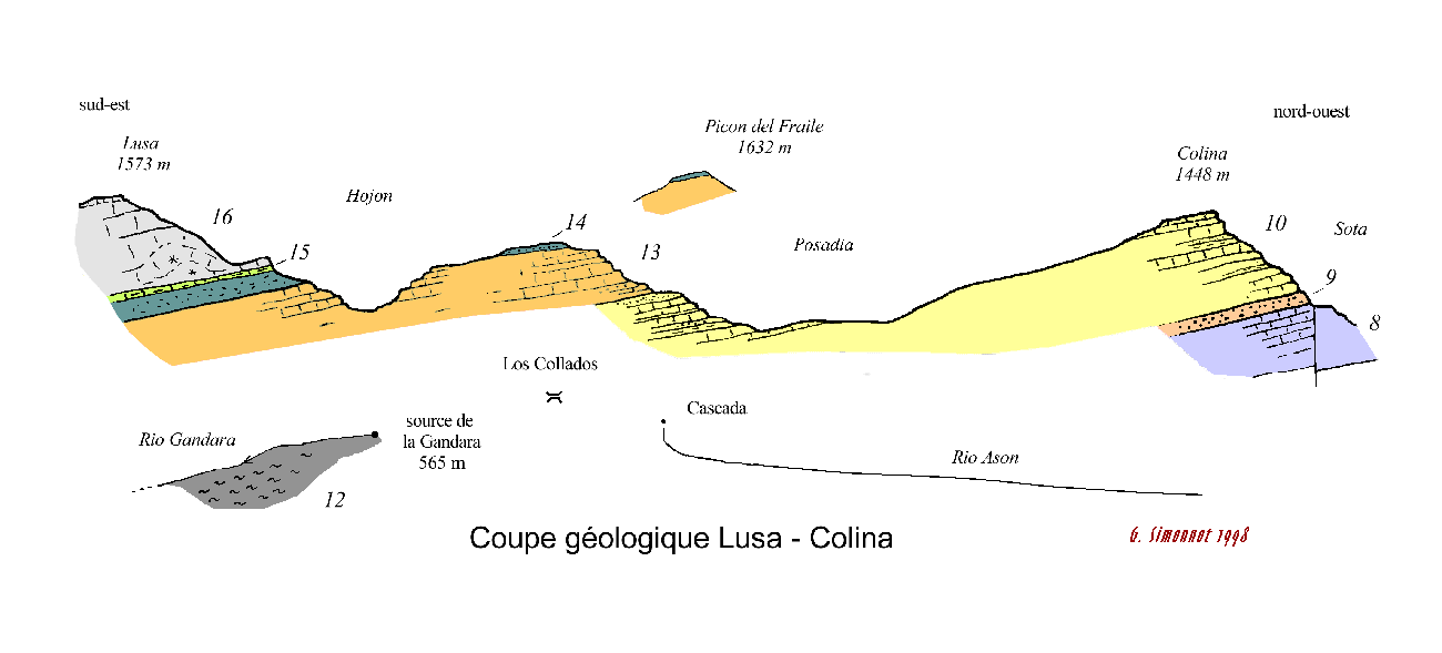 con un buzamiento medio de 10°. Al sur de Peña Lusa, cerca del